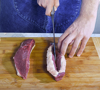 1. Positionnez le magret devant vous, dans le sens de la longueur.