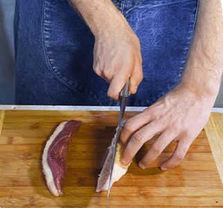 Le magret se découpe également en tranches, comme de fines escalopes :