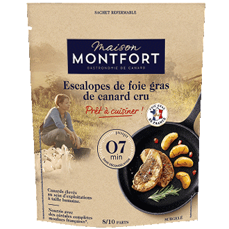 Ces escalopes de foie gras de canard conservent toute leur fraîcheur grâce à la surgélation Maison Montfort. Prêtes à cuire en seulement 7 minutes à la poêle, cuite directement sortie du congélateur elles offrent une fonte limitée à la cuisson.