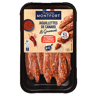 Dégustez des aiguillettes de canard Origine France sublimées par une délicieuse marinade aux Piment d’Espelette. Un plaisir gourmand prêt en seulement 4 minutes à la poêle. Existe aussi en version cèpes, 3 baies, herbes de Provence et fleur de sel.