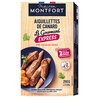 Issues de canards certifiés Origine France et nourris sans OGM (<0,9%), nos aiguillettes vous garantissent une préparation ultra-rapide : seulement 4 minutes à la poêle.