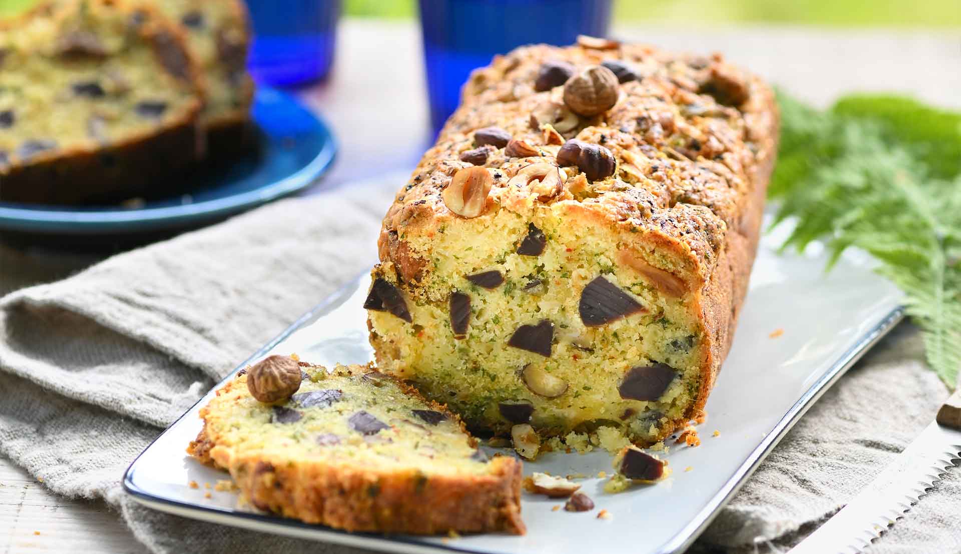 • 6. Mélangez le tout, disposez dans un moule à cake et faires cuire à 180° pendant 35 à 40 min.