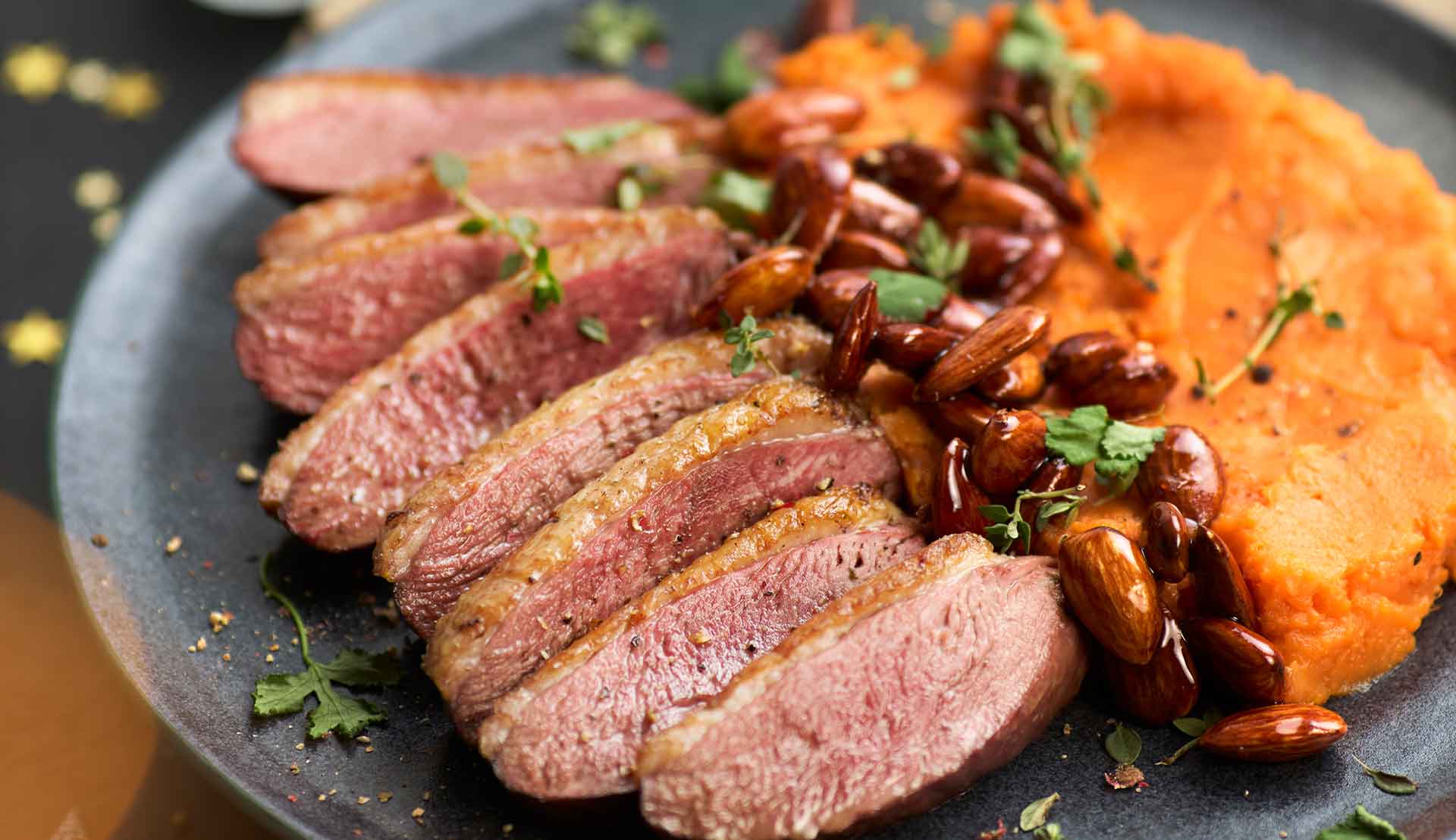 • 4. C’est presque terminé ! Tranchez les magrets en fines lamelles et disposez les tranches dans les assiettes. Vous pouvez accompagner ce plat avec des légumes sautés, une purée de pommes de terre ou une salade verte.