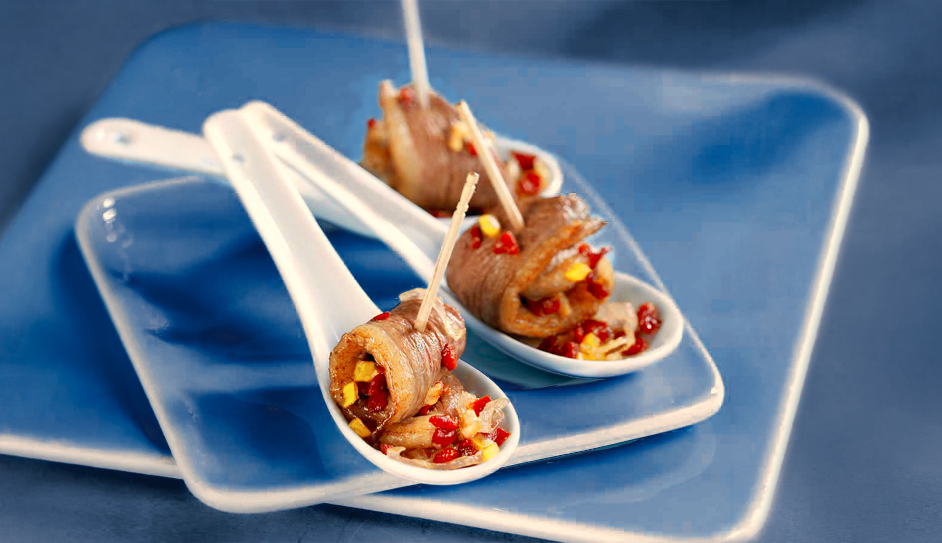 2. Déposer sur une assiette quelques tranches de magrets, les recouvrir du mélange piments / échalotes / ail et arroser d’un filet d’huile. Poser par dessus d’autres tranches de magret puis l’émincé de piments /échalotes / ail, de l’huile d’olive, et ainsi de suite.